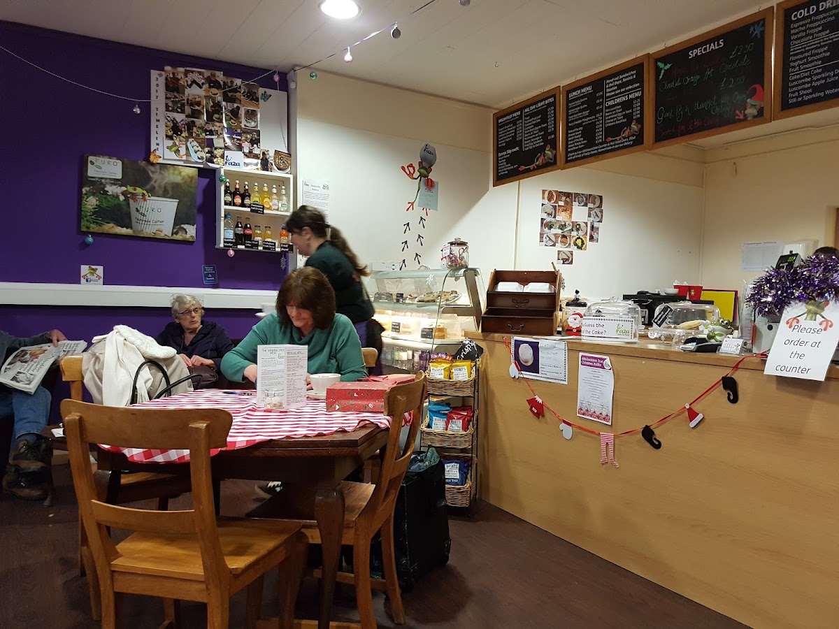 Great medium size cafe offering a range of cooked breakfasts, jacket potatoes, sandwiches, paninis, curry and pasties reasonably priced. Great selection of teas coffees and milkshakes, which my kids said were the best with cream and marshmallows. Fresh home made coleslaw and sconesThe cafe is part of able2achieve trust and is dog friendly.